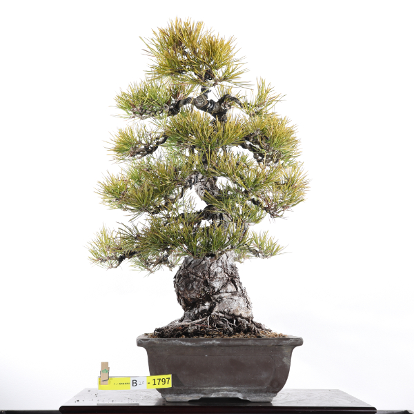 〈黒松〉気品、格調、風格をすべて備えたまさに盆栽の王者です。太い幹と見事な根張り、豪快に割れた黒褐色に樹皮は堂々とした姿です。生産地である高松市鬼無、国分寺地区でも多くの盆栽生産者が丹精を込めて栽培に取り組んでいます。