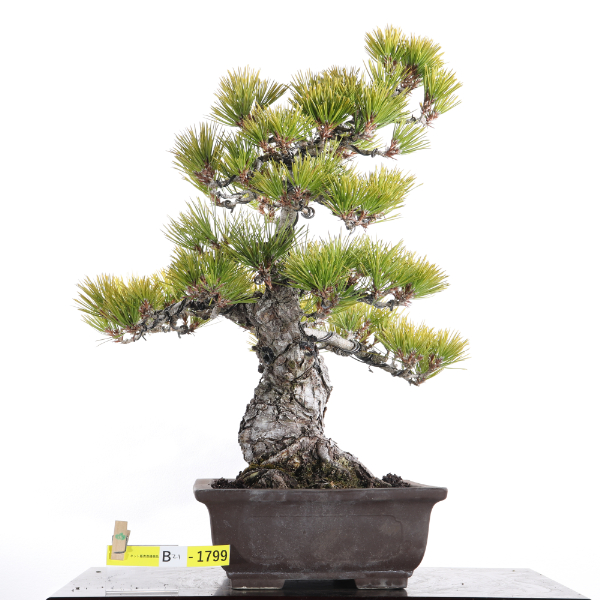 〈黒松〉気品、格調、風格をすべて備えたまさに盆栽の王者です。太い幹と見事な根張り、豪快に割れた黒褐色に樹皮は堂々とした姿です。生産地である高松市鬼無、国分寺地区でも多くの盆栽生産者が丹精を込めて栽培に取り組んでいます。