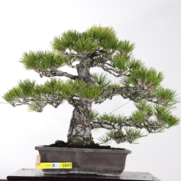 〈黒松〉気品、格調、風格をすべて備えたまさに盆栽の王者です。太い幹と見事な根張り、豪快に割れた黒褐色に樹皮は堂々とした姿です。生産地である高松市鬼無、国分寺地区でも多くの盆栽生産者が丹精を込めて栽培に取り組んでいます。